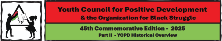 The Organization for Black Struggle would like to express our gratitude for all those who have been on the 45-year journey with us. To our members—past, current and those who have joined the ancestors—for their contributions to the freedom struggles. To our supporters who have given us their time, ideas, energies, constructive criticisms and money to ensure our ability to continue the fight.