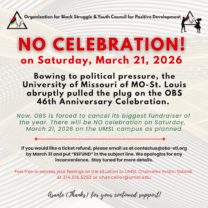 UMSL CANCELS THE 46TH ANNIVERSARY PROGRAM OF THE ORGANIZATION FOR BLACK STRUGGLE